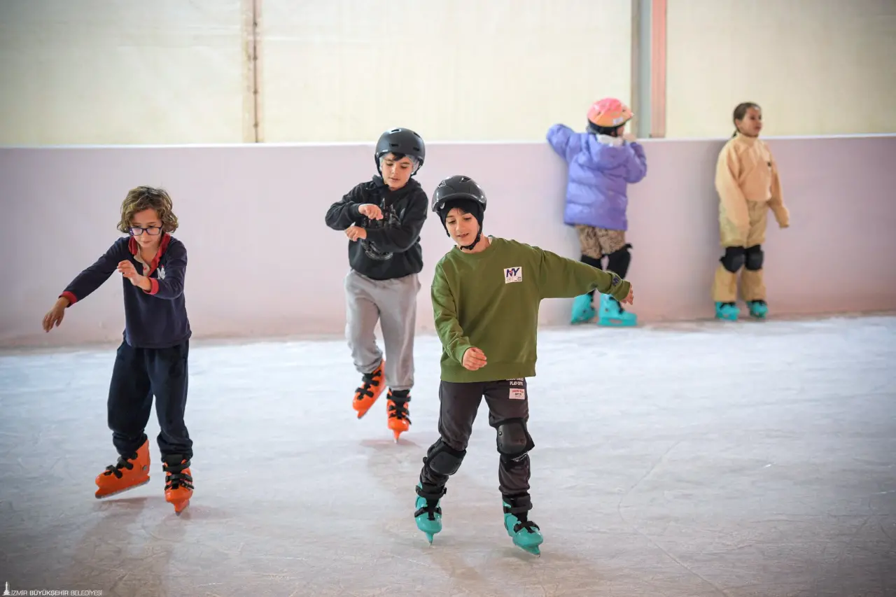 İzmir Büyükşehir Belediyesi’nin Kültürpark ve Bostanlı’daki 400 metrekarelik gerçek buz pistleri, 15 Şubat tarihine kadar gençler ve yetişkinlere hizmet verecek. 7-26 yaş arasındaki gençler 100 TL, yetişkinler 150 TL karşılığında kayma deneyimi yaşayabilirken, belediye kış boyunca kültürel ve sportif etkinliklerle çocukların sosyal ve sportif gelişimini desteklemeye devam ediyor.