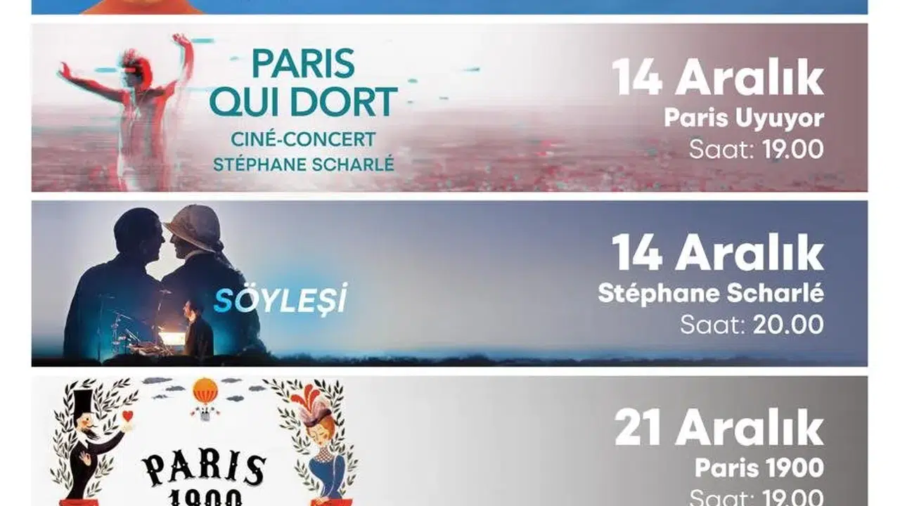 René Clair’in yazıp yönettiği 1924 Fransa yapımı bilim kurgu ve komedi türlerindeki sessiz film Paris Uyuyor’un müzikleri, Stéphane Scharlé imzası taşıyor. Filmde bir gece ansızın gizemli bir şekilde donup kalan Paris’te yaşananlar konu ediliyor. René Clair’in anlatımıyla Paris’in en gözde yapılarının etkileyici bir şekilde beyaz perdeye yansıtıldığı filmin gösterimi Stéphane Scharlé’nin performansıyla bir sinema konser etkinliği olarak gerçekleştirilecek. Film, 14 Aralık'ta gösterimde olacak.