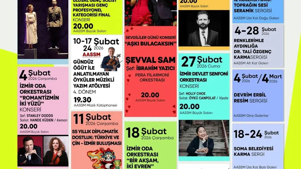 Ahmed Adnan Saygun Sanat Merkezi (AASSM), şubat ayı boyunca müzikten dansa zengin programıyla sanatseverleri ağırlayacak. Müzikal yarışmalar, konserler, özel temalı performanslar, atölyeler ve sergiler ile İzmir’de sanatın nabzı tutulacak.