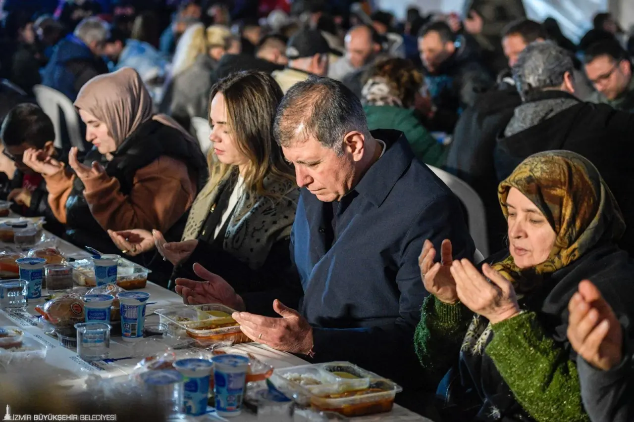 30 gün boyunca 30 ilçede iftar sofraları kurduklarını hatırlatan Başkan Tugay, "Zengin, yoksul, yaşlı, genç, kadın, erkek her kesimden insanın eşit bir şekilde bu sofranın etrafında oturduğu ve aynı yemeği yediği bir tablo var. Bu ay birlik beraberlik ayı, bereket ve bolluk dileyeceğimiz bir ay ama bunun için hatırlamamız gereken bir şey var; o da bütün insanların eşit olduğu. Ramazan ayının anlamının bu olduğunu düşünüyorum. Özellikle yönetici pozisyonunda olan, yetkisi olan, makamı ve gücü olan insanların hatırlaması lazım" ifadelerini kullandı.