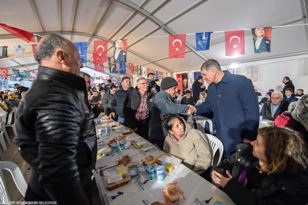 İzmir Büyükşehir Belediyesi’nin ramazan ayı boyunca kentin farklı ilçelerinde düzenlediği iftar programları, arife gününde Urla’da sona erdi. İzmir Büyükşehir Belediye Başkanı Dr. Cemil Tugay, eşi Öznur Tugay ile birlikte Urlalı yurttaşlarla iftar sofrasında buluştu. Başkan Tugay, “Bu şehrin yetiştirdiği evlatlar olarak İzmir’e hizmet etmeye çalışıyoruz. Yüreğimizde sadece İzmir’imizin ve burada yaşayan her bir yurttaşımızın refahı, mutluluğu ve huzuru var” dedi.